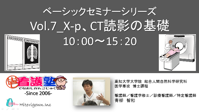 ●このセミナーでは、主に胸部単純X線写真とCT、腹部単純写真とCT、脳CTの正常画像と異常画像について話をしています。我々看護師は、診断を仕事としているわけではありませんので必ずしも画像は読める必要はないかもしれません。しかし、臨床所見で異常を疑った場合に「写真を撮影する」と言うことは日常臨床であり、「今写真を撮ったほうがいいのではないか?」と言うタイミングがわかると、適切なタイミングで医師へ報告することができるようになります。そのスキルを磨くためには、普段から臨床所見と画像所見、あるいは検査所見を見比べていく必要があります。診断を目的としない看護師のための画像所見の基礎、ぜひお越しください。